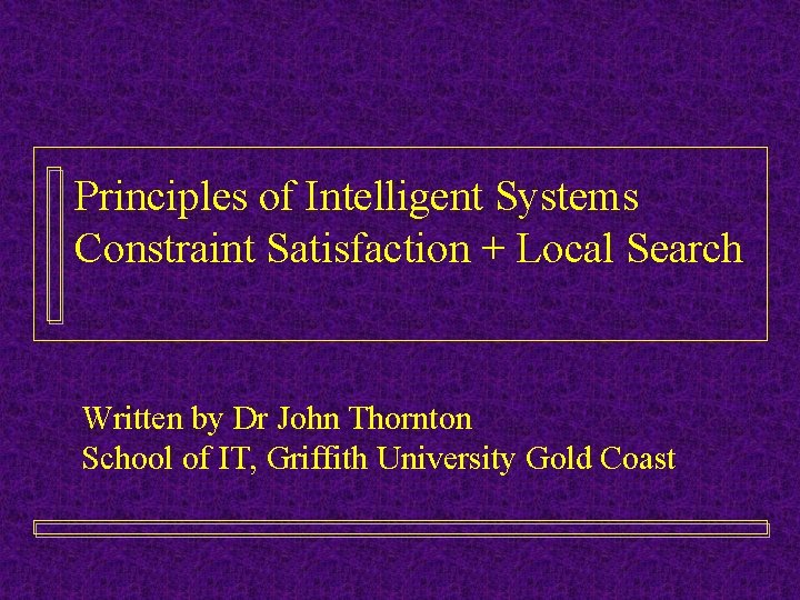 Principles Of Intelligent Systems Constraint Satisfaction Local Search